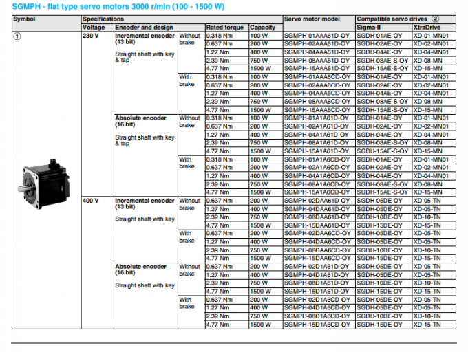 | SGMPH-15A1A-YR11 | SGMPH-15A1A6CD-OY |