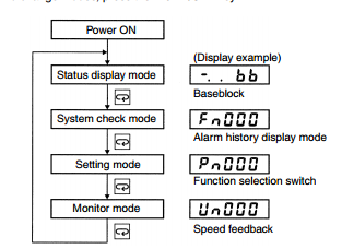 Baseblock, operasi, rotasi ke depan dilarang, rotasi terbalik dilarang, tampilan alarm