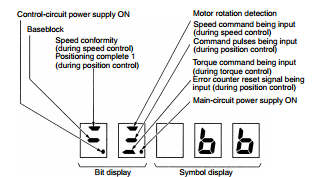 Umpan balik kecepatan, perintah kecepatan, perintah torsi, jumlah pulsa dari asal, sudut listrik, pemantauan sinyal input, pemantauan sinyal output, tampilan kecepatan pulsa perintah, kesalahan posisi, penghitung pulsa input / umpan balik penghitung pulsa
