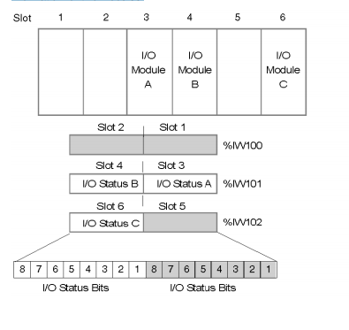 Terutama I / O modul diskrit dapat dikonfigurasi untuk mengirimkan data I / O mereka baik dalam format kata atau dalam format bit. Ini dapat dipilih selama konfigurasi dengan memilih% IW (% MW) atau% I (% M). Jika Anda perlu mengakses satu bit dari modul I / O yang dikonfigurasi untuk menggunakan kata I / O, Anda dapat menggunakan kata% sintaks.bit. Tabel berikut memberi Anda koneksi antara nomor poin I / O dan alamat I / O terkait dalam pengalamatan bit dan word. Tabel menunjukkan modul input 32-titik di rak utama, slot 4 dikonfigurasi dengan alamat awal% I1 atau% IW1: