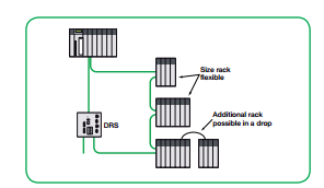 Hingga 31 tetes QEIO. Setiap tetes bisa 1 atau 2 rak, masing-masing rak 4 to16 slot. Evolusi masa depan QEIO akan memungkinkan Modicon M340 untuk digunakan sebagai I / O tetes untuk lebih memperluas fleksibilitas.