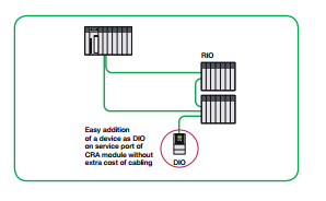 Tidak perlu menambahkan kabel - cukup hubungkan pulau DIO baru Anda ke jaringan QEIO yang ada melalui port atau switch layanan. Ada kemungkinan untuk mencampur DIO dan RIO di media yang sama.