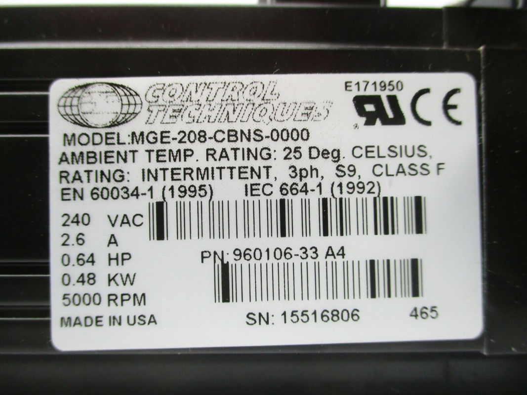MGE-208-CBNS-0000 Control Techniques MG Servo Motor 230VAC 2 Frame