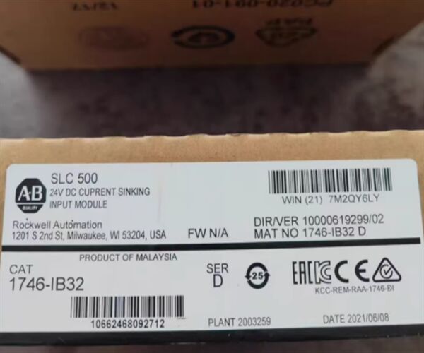 The Allen-Bradley 1746-IB32 is an SLC 500 input module. This is a 24VDC sinking input module that features Thirty-Two (32) sink input channels, accepting signal voltage range of 15-30VDC at 50 Deg. Celsius and 15-26.4VDC at 60 Deg. Celsius. It has backplane current consumption of 0.05 A with signal delay of 3 ms for both transitions.