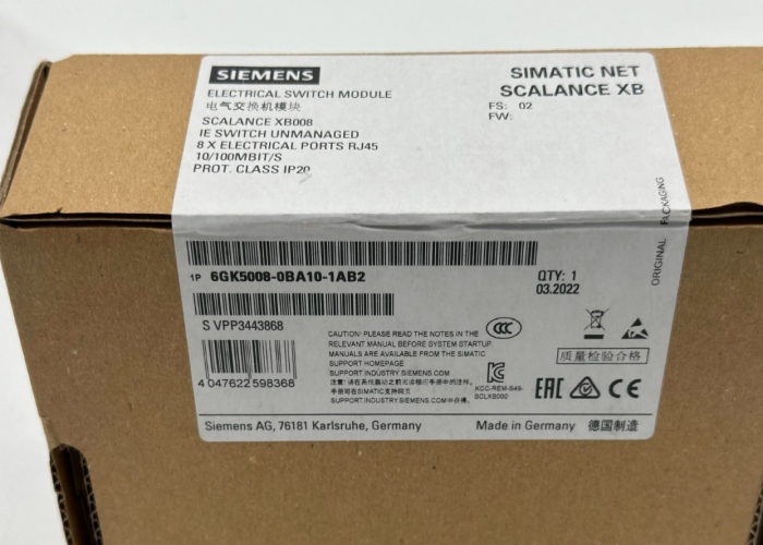 6GK5008-0BA10-1AB2 DescriptionThe Siemens 6GK5008-0BA10-1AB2 is a high-performance, 8-port Industrial Managed Switch from the SCALANCE X-200 series. Engineered for robust industrial Ethernet networking, it provides reliable, real-time communication for automation systems. It features advanced management functions, redundant network topologies, and a rugged design for deployment in harsh environments. This switch is a core component for building resilient PROFINET and standard Ethernet networks in industrial automation, enabling seamless data exchange between PLCs, HMIs, drives, and other connected devices.