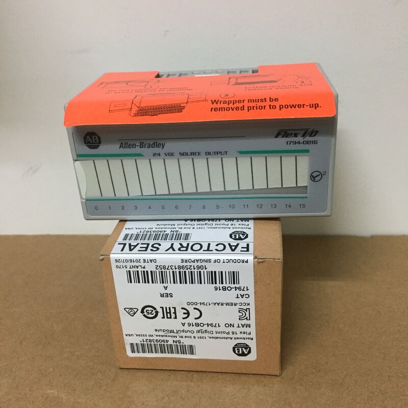 Modul Allen-Bradley 1794-OB16 adalah modul output DC digital untuk FLEX I/O. Modul ini memiliki 16 output sumber arus.dan 24 Volt DCRating output arus dari semua 16 output (masing-masing bernomor 0.5 Amps) adalah 8 Amps sementara arus pada keadaan minimum adalah 1 milliampere per saluran dan arus pada keadaan maksimum adalah 500 milliampere per saluran. Penurunan tegangan maksimum pada keadaan adalah 0,5 Volt DC. arus lonjakan adalah 2 Amps selama 50 milidetik dan dapat diulang setiap 2 detik. arus kebocoran maksimum di luar keadaan adalah 0,5 miliampere.Tegangan isolasi adalah 50 volt terus menerusModul telah diuji pada 850 volt DC selama 1 detik antara pengguna dan sistem.